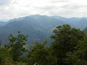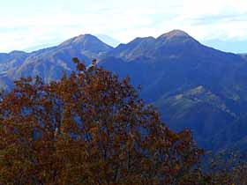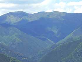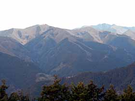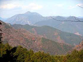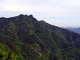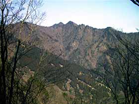 | 018 | 川苔山(1363) | 川井駅(253)−獅子口小屋跡(996)−川苔山−本仁田山(1225)−奥多摩駅(340) (95.09.09) | 大岳山と奥多摩一番人気を競う奥多摩屈指の好展望の山。山頂に至る道は多彩で、鳩ノ巣から大根ノ山ノ神経由が最短だが川乗谷林道コースが人気。その他、大丹波川沿い、赤杭尾根、真名井沢北稜、本仁田山からの尾根道、日向沢ノ峰からの尾根道等がある。 歩程例は川井駅から大丹波川沿いを登り、登頂後は本仁田山経由で奥多摩駅へ下ったやや長めのコース。 ![]() 岩茸石山より川苔山。 |