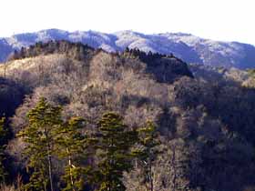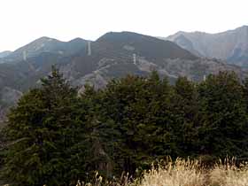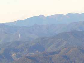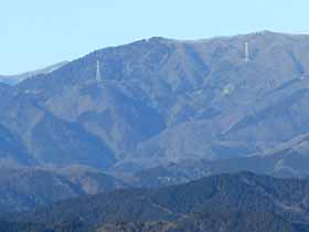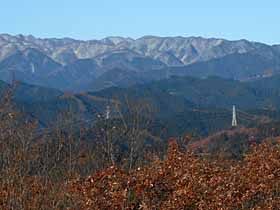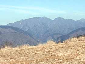 | 007 | 有間山(タタラの頭1213) | 名郷BS(328)−鳥首峠(933)−橋小屋の頭(1163)−タタラの頭−仁田山(1211)−日向沢の峰(1356)−棒ノ折山(969)−名坂峠(720)−川井駅(267) (96.12.29) | 有間山は、最近では主に1213.5m三角点(タタラの頭)付近を指すようだが、元来、名栗川上流域で秩父側の浦山川流域との境をなす、鳥首峠から仁田山の南までにかけての稜線の総称。昔は、橋小屋の頭より南は薮と無展望の樹林帯のため、篤志家向けのコースだったが、近年は藪が切り開かれ、展望も得られるようになった。その後、タタラの頭〜仁田山間を林道が乗越す(有馬峠)ようになったが、通行止の事が多い。 歩程例は、適期には日も短く日没も気になるロングコースだが、有間山全山を縦走するとどのみち下山路は長くなる。 ![]() 多峯主山より仁田山〜橋小屋の頭。奥に左・三ツドッケ〜中央やや右・大平山(手前タタラの頭)。 |