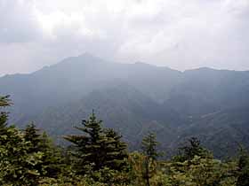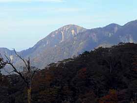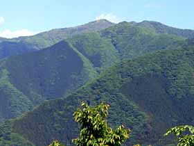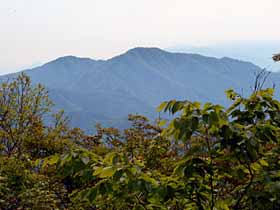| 024 | 三頭山(中央峰1531) | 都民の森駐車場(990)−鞘口峠(1142)−三頭山東峰(1528)−三頭山中央峰−三頭山西峰(1525)−ムシカリ峠(1103)−滝見橋(1075)−都民の森駐車場 (19.09.06) | 南奥多摩最奥・最高峰の山。奥多摩主脈(御岳山方面)と笹尾根(高尾山方面)の起点となる山。昔は日帰りがきつい深山だったが、奥多摩周遊道が出来たのでこの山だけなら都民の森から短い周遊コースで辿ることが出来る。 歩程例は都民の森駐車場発着3時間20分のショートコースだが、深山の趣を味わい、三頭大滝を見物する等楽しい。都民の森早朝発なら、御前山・大岳山と奥多摩三山日帰り縦走も不可能ではない。 ![]() 御前山頂陵部西端より三頭山。 |