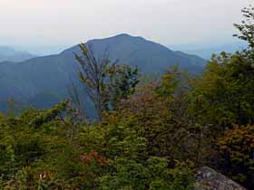 | 021 | 御前山(1405) | 御岳平(830)−アクバ峠(1020)−大岳山(1266)−大ダワ(990)−クロノ尾山(1170)−御前山−西の境橋分岐(1320)−境橋BS(380) (16.05.20) | 展望は良くなく、結構混んでることが多くて、山頂自体はそれほど面白くない御前山だが、奥多摩主脈にあってその縦走の他、南北両側に様々な登山ルートが採れるの登りがいのある山で、やはりこの企画としては外せない名山。入門コースは栃寄沢沿いの道から登ってサス沢山から小河内ダムに降りるコースだが、御岳山ケーブルを利用すれば大岳山からの縦走も極端にきつくはない。その他、南面の湯久保尾根コースが有名だが、その東の中尾根や北面九重山の尾根も困難な登路ではない。 歩程例では御岳山ケーブル利用で大岳山から縦走し栃寄沢沿いの道を下っている。 ![]() 大岳山より御前山。 |