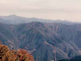 | 002 | 日和田山(305) | 高麗駅(110)−日和田山−物見山(375)−北向地蔵(377)−ユガテ(290)−顔振峠(500)−吾野駅(180) (94.09.11) | 東京周辺ハイキング入門の山。山頂直下の金毘羅神社(260)で絶景を満喫できる。巾着田など高麗周辺の名所と合わせて歩けば比較的軽いハイキングが楽しめる。 歩程例は、日和田山から奥武蔵高原尾根を顔振峠へ向かっており、途中「桃源郷」と形容される山村集落ユガテに立寄るなど歩きでのあるコース。 ![]() 多峯主山より日和田山。左に高指山。 |
