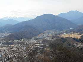 | 014 | 城峯山(1038) | 城峯神社駐車場(930)−城峯山−城峯神社駐車場 (14.11.03) | この山の登山動機は、一にも二にも展望抜群と言うこと。山頂展望塔からの奥武蔵、奥秩父、西上州の山々の眺めが素晴しいし、荒川左岸の丘陵地の細かい山ひだも印象的。公共交通機関利用はきつい。昔、登ったときは、運良く皆野駅から万年橋BSまでバスを利用することが出来たが、その後は1時間以上の車道歩きでようやく登山口に。下りでは、門平付近から親鼻駅まで約2時間の車道歩きだった。 歩程例は城峯神社駐車場までバイク。徒歩15分ほどで展望塔に立つ事が出来た。 ![]() 賽神峠南の車道より城峯山。手前に宝登山。 |