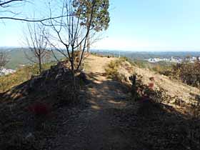 | 029 | 北高尾山稜(城山本丸460) | 八王子城跡BT(230)−城山本丸−富士見台(550)−杉の丸(612)−堂所山(731)−陣馬山(855)−上沢井(300)−藤野駅(220) (13.06.09) | 奥高尾の主稜から堂所山(奥高尾縦走路は僅か南を巻いてしまっている)で北側へ分岐し、八王子城山へ至る尾根コース。陣馬山と結ぶのが定番で、どちら向きも歩かれている。展望に恵まれない無名峰の登り下りが多く意外ときつく感じるが、奥高尾縦走路よりは遥かに人が少なく、静かな山歩きが楽しめる。また、八王子城跡の遺構巡りも興味深い。 歩程例では八王子城跡BTから歩き出して、陣馬山からは一の尾根コースを下っているが、栃谷尾根コースをお勧めしたい。 ![]() 千手山西伐採地より北高尾山稜の富士見台〜黒ドッケ辺り。 |