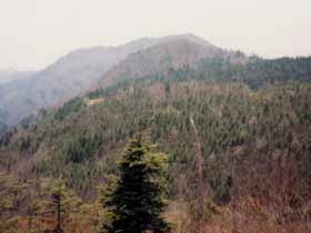 | 055 | シダンゴ山(758) | 寄BT(282)−シダンゴ山−高松山(801)−山北駅(108) (95.05.20) | 以前は無名の三角点峰だったが、その後ファミリーハイク向けのコースが整備され、手軽に登れて展望も良いので、現在ではガイドブックにも当たり前に紹介されている。山頂は展望抜群で、富士山の他、雨山〜鍋割山の稜線の向こうに丹沢主稜部が高山の趣で重厚に望まれる。一日の山行としてはこの山だけでは物足りないので、尾根伝いに高松山まで足を延ばす事をお薦めする。![]() 対岸567.8m峰中腹の道よりジダンゴ山。 |